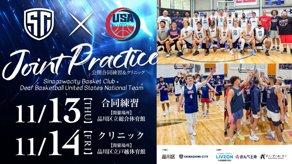 この度、しながわシティバスケットボールクラブは、世界ランキング1位のデフバスケットボールアメリカ代表チームとの公開合同練習を行うことになりました。