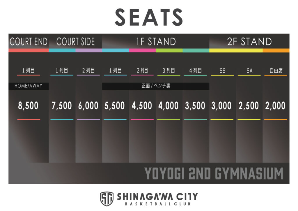 ※ COURT END/COURT SIDE/1F STAND は全て列内自由席となります。