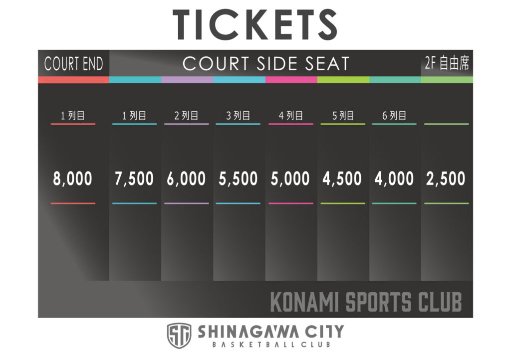 ※ COURT END/COURT SIDE/1F STAND は全て列内自由席となります。