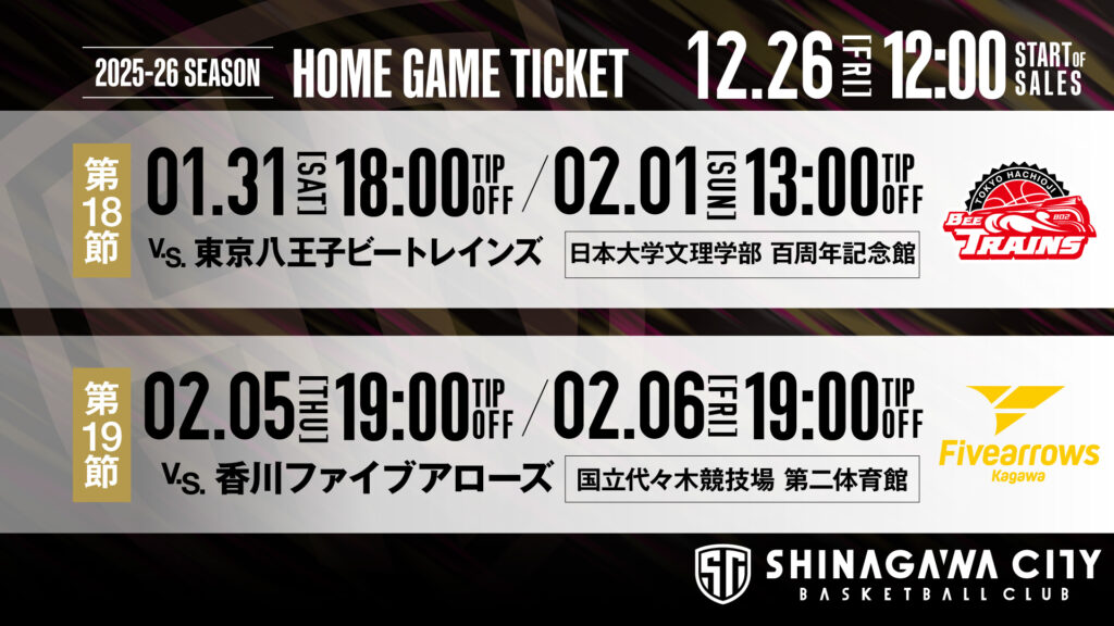 2025.12.23 チーム第18節 八王子戦・第19節 香川戦 チケット販売...
