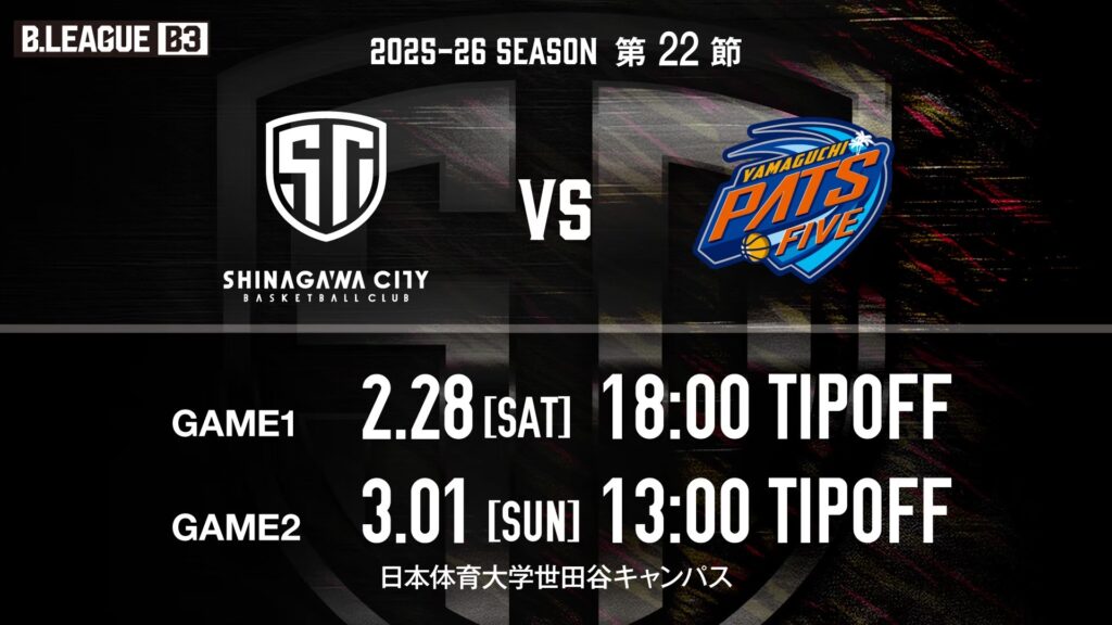 2026.02.21 チーム第22節 山口パッツファイブ戦 ホームゲーム情報