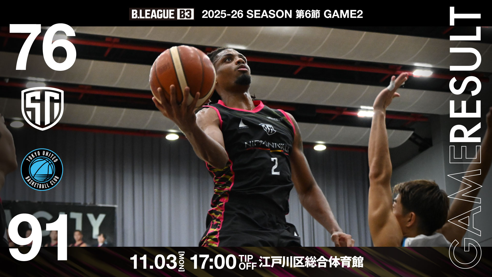 | 東京ユナイテッドBC | 25 | 26 | 19 | 21 | 91 | Win |