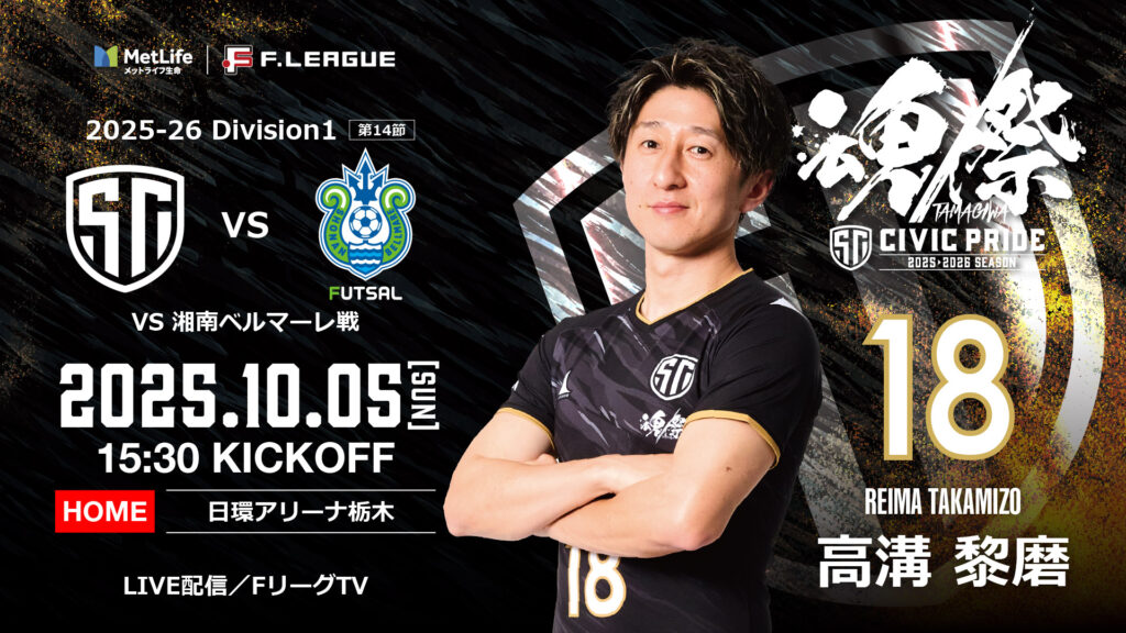 NEXT MATCH 2025-11-01 16:45 Fリーグ 小田原アリーナ 該当なし メットライフ生命Fリーグ2025-26 ディビジョン1 第15節 2025-11-09 17:00 Fリーグ 横浜武道館 該当なし メットライフ生命Fリーグ2025-26 ディビジョン1 第16節 2025-11-15 16:00 Fリーグ 泉市民体育館 該当なし メットライフ生命Fリーグ2025-26 ディビジョン1 第17節 GAME RESULT 2025-10-05 2 - 1 Fリーグ 日環アリーナ栃木 該当なし メットライフ生命Fリーグ2025-26 ディビジョン1 第14節 2025-09-29 8 - 0 Fリーグ 大田区総合体育館 該当なし メットライフ生命Fリーグ2025-26 ディビジョン1 第13節 2025-08-29 3 - 1 Fリーグ ひがしんアリーナ 該当なし メットライフ生命Fリーグ2025-26 ディビジョン1 第12節 試合情報一覧 RANKING Posチーム勝点1名古屋オーシャンズ332SHINAGAWA CITY303立川アスレティックFC244ペスカドーラ町田235フウガドールすみだ216バルドラール浦安197シュライカー大阪188湘南ベルマーレフットサルクラブ159バサジィ大分1510ボルクバレット北九州1211Y.S.C.C横浜1112ボアルース長野9順位表を表示 NEWS 2025.10.07 チーム 【TOP】 フットサル日本代表 10月国際親善試合... 日頃より、しながわシティスポーツクラブへのご支援・ご声援誠にありがとうございます... 2025.10.02 チーム 第14節 湘南ベルマーレ戦 ホームゲーム情報! 試合情報■試合:メットライフ生命Fリーグ 2025-26 ディビジョン1 第14... 2025.09.23 チーム 第14節 湘南ベルマーレ戦 チケット販売情報! 試合情報■試合:メットライフ生命Fリーグ 2025-26 ディビジョン1 第14... もっと見る