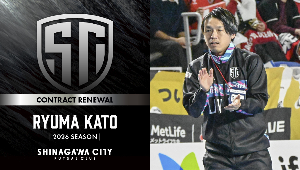 この度、加藤竜馬コーチ兼提携クラブ「栃木シティフットサルクラブ」監督と2026-27シーズンの契約を更新いたしましたので、お知らせいたします。